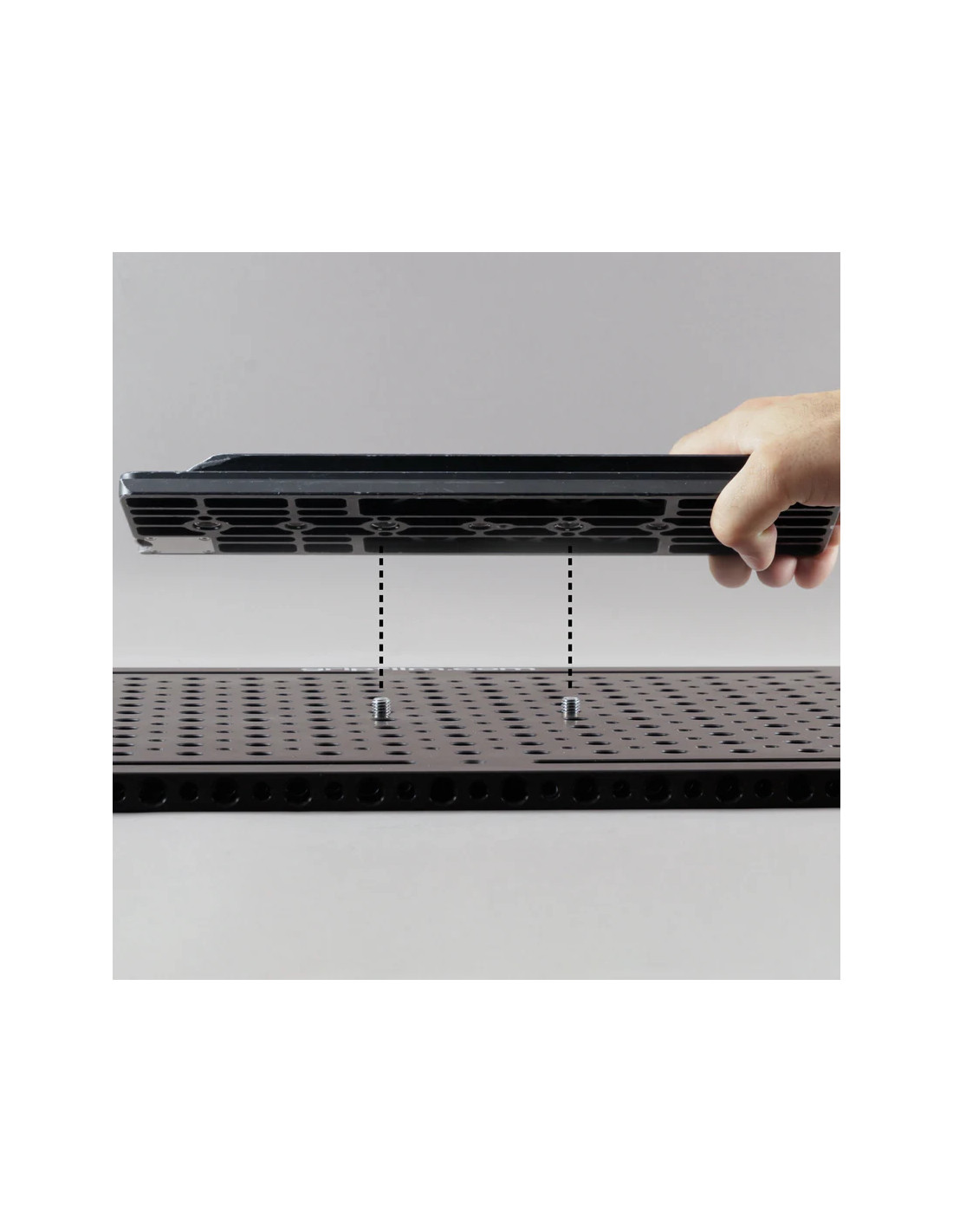 Avec ses dimensions généreuses (454 x 353 x 14 mm) et un espacement de trous de 25,4 mm, cette cheese plate "XL" est idéale pour les montages personnalisés et résistants. Elle comprend des pas de vis femelles 3/8" sur le profil, des trous fraisés pour vis M10 et 3/8", ainsi que des perçages traversants pour structures rigides. Conçue pour supporter de lourdes charges, elle constitue un support de base polyvalent et professionnel.