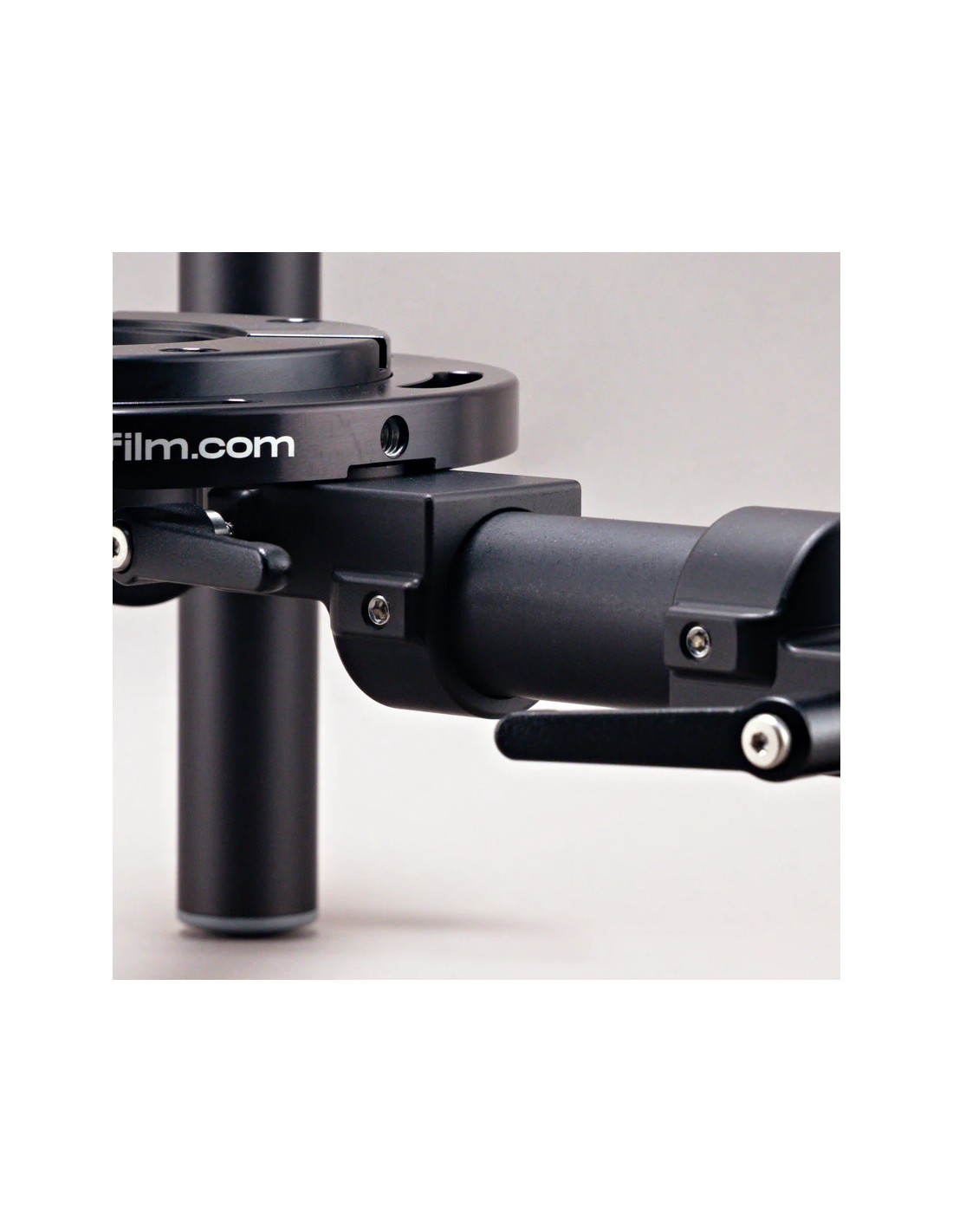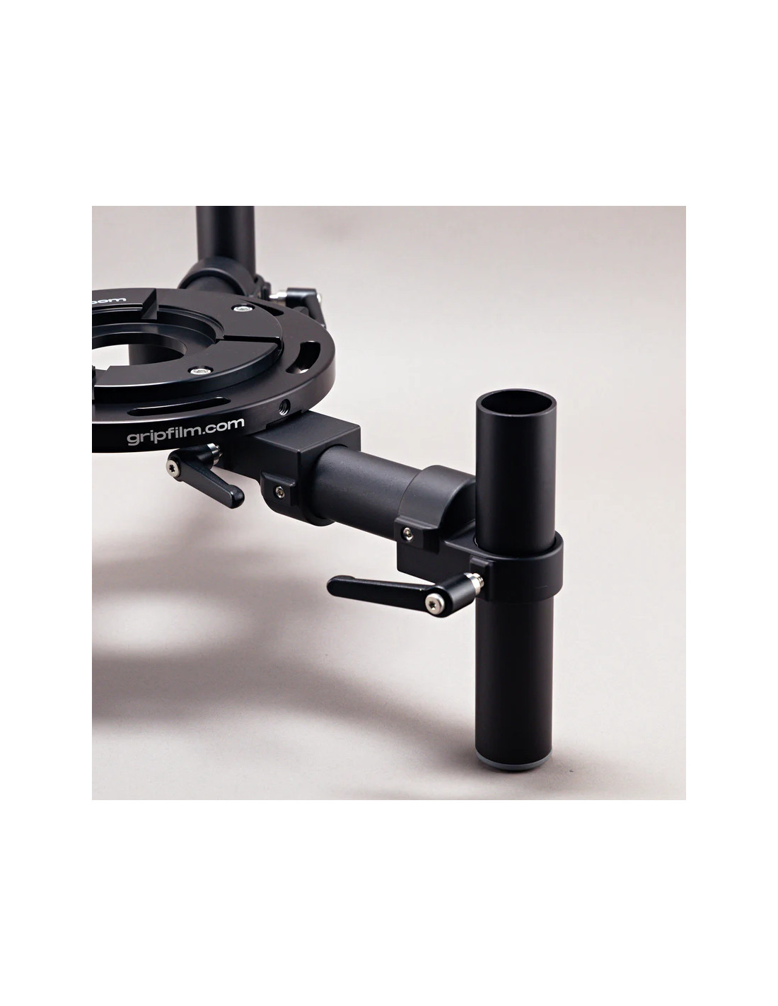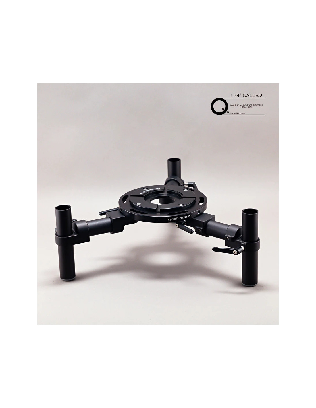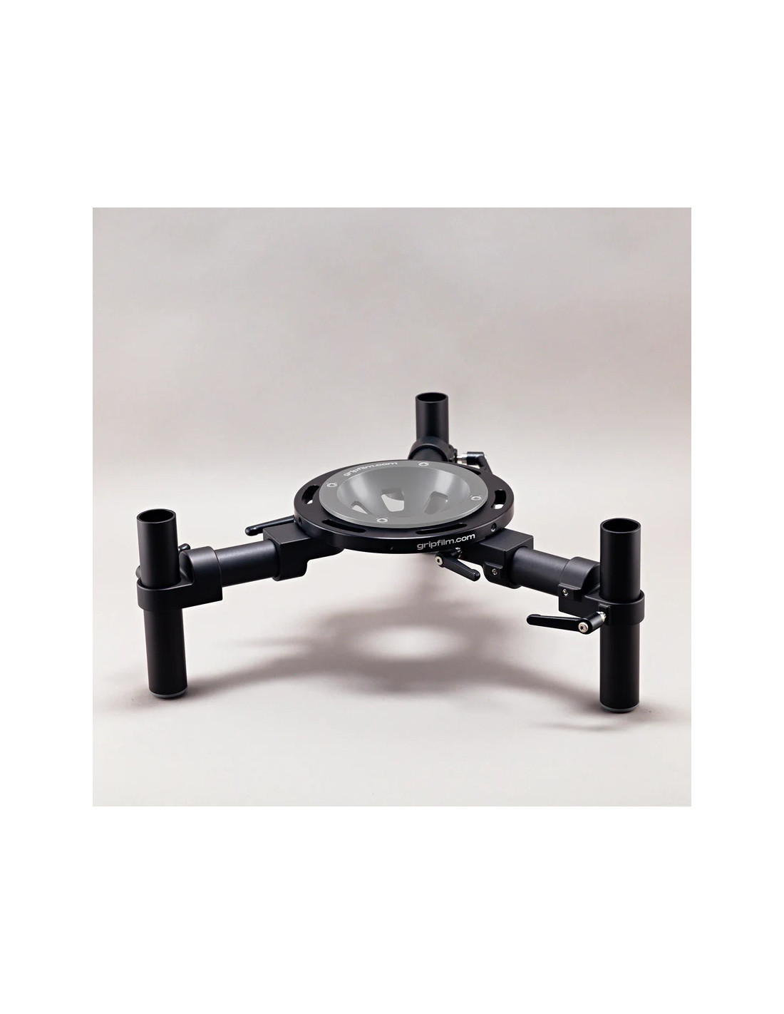 Composé d’un anneau principal de 250 mm et d’une base Mitchell de 185 mm, ce kit repose sur trois jambes en aluminium noir 42 mm (1"1/4), fixées via des starters, T-speed rails et leviers de serrage M8. Entièrement fabriqué en aluminium anodisé noir et inox, il garantit une stabilité exceptionnelle pour les montages grip, camera rig ou plateaux surélevés. Facile à monter et à démonter, il est conçu pour un usage intensif sur les tournages professionnels.