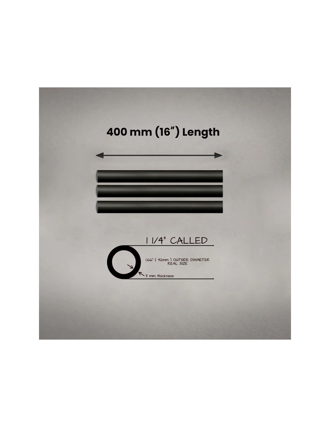- Contenu : 3 tubes 42 mm x 400 mm anodisés noirs
