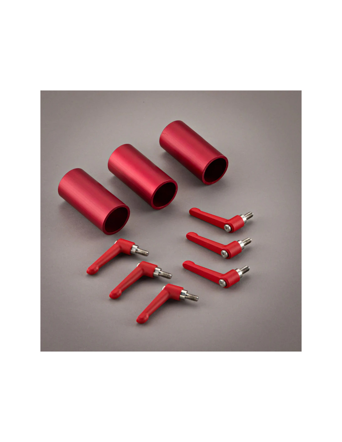 Les tubes sont en aluminium haute résistance, avec finition anodisée rouge pour une durabilité maximale et une excellente visibilité. Les leviers de serrage, également rouges et en acier inoxydable, permettent un verrouillage précis, rapide et sans outil. Ce kit assure un montage professionnel, esthétique et pratique, parfait pour les tournages dynamiques.