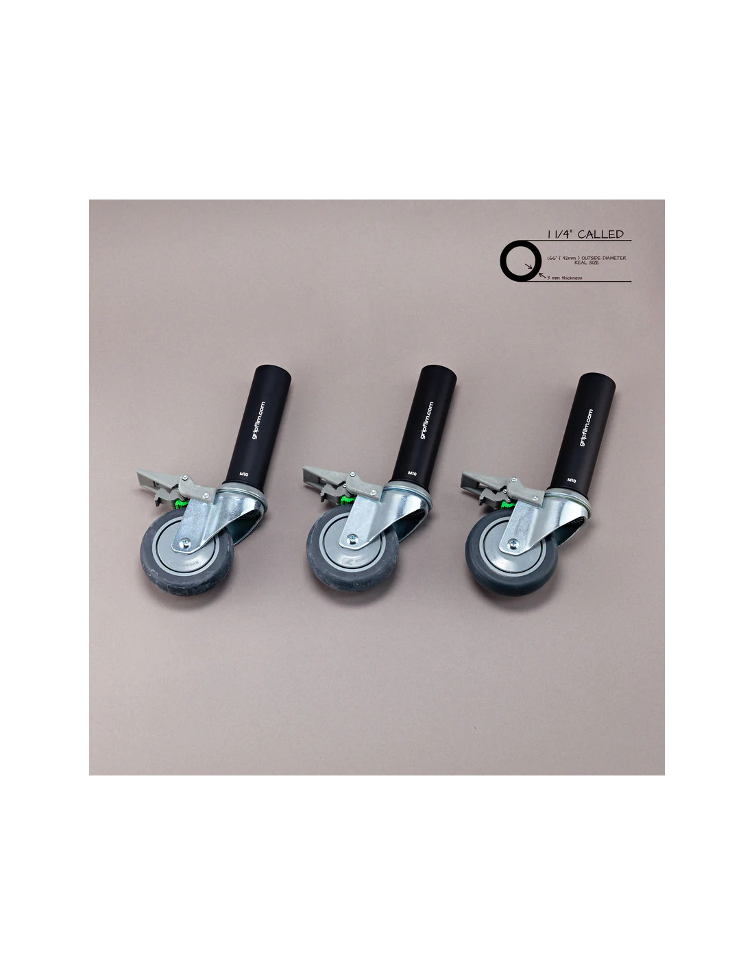 Le set de starter pins Ø42 mm avec roues pivotantes Ø100 mm est conçu pour les professionnels du grip et de la machinerie souhaitant transformer rapidement une structure en plateforme mobile. Il comprend 3 pins de 150 mm en aluminium haute résistance, dotés d’un filetage femelle M10, permettant le montage des roues incluses via vis fraisées inox DIN 7991 A-2.