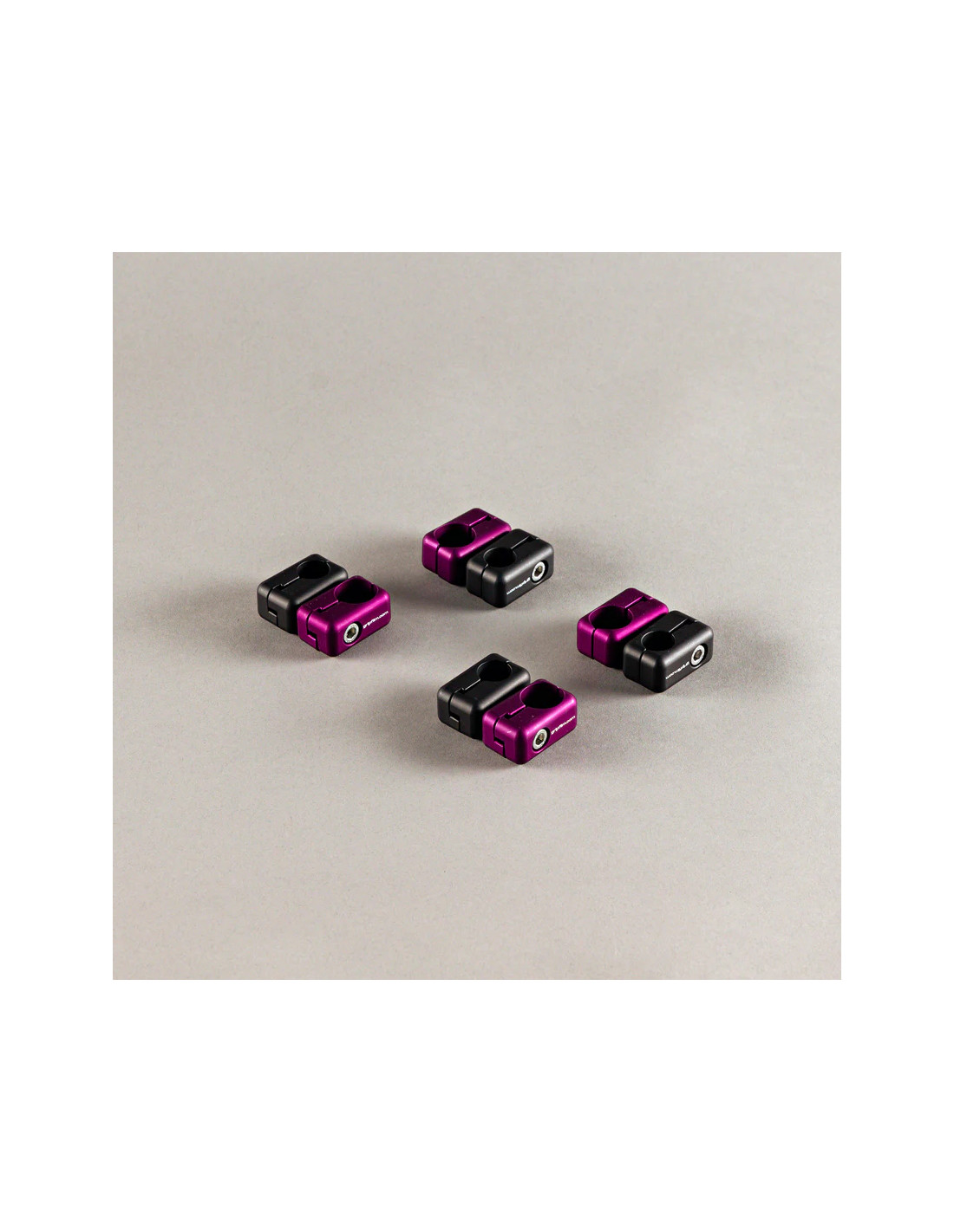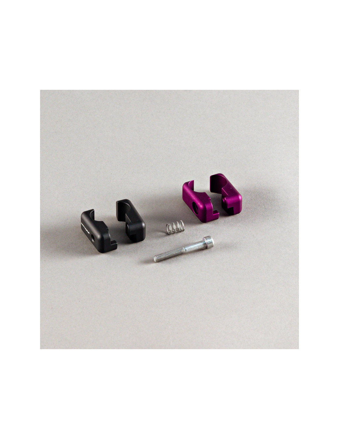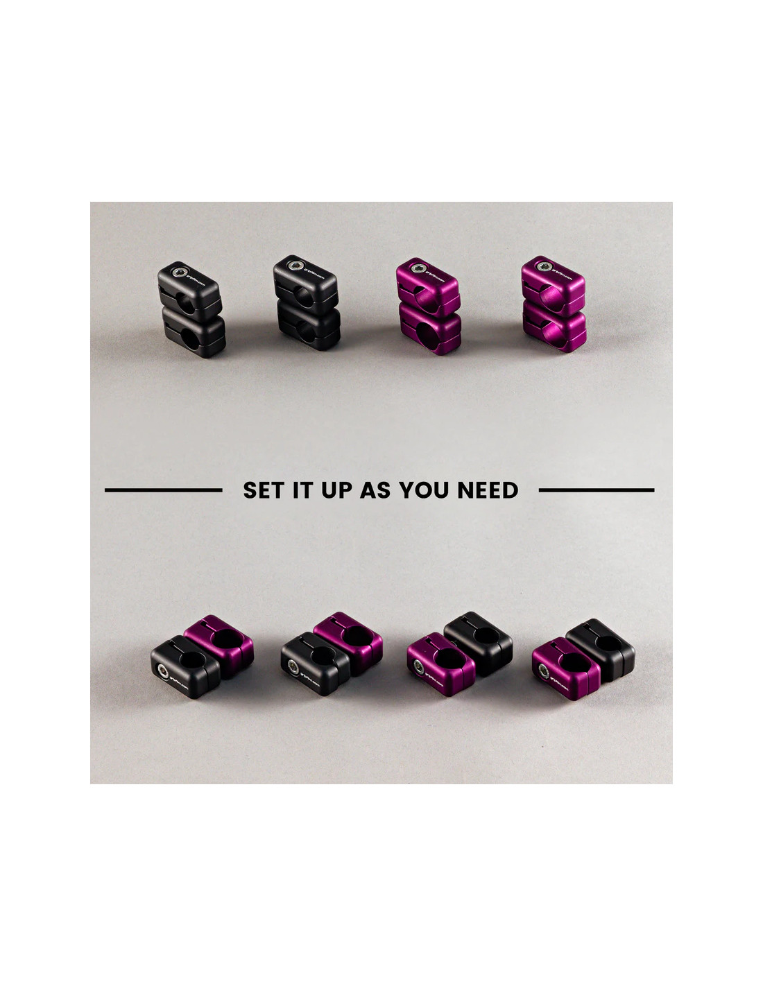 Fabriqués en aluminium haute résistance, les colliers bénéficient d'une finition anodisée noire pour une durabilité accrue. Chaque pièce est gravée au laser pour une identification rapide. Le système de serrage repose sur des vis M6 en inox (DIN 912 A-2) et des ressorts en acier inoxydable, assurant précision, fiabilité et maintien optimal. Le tout est conditionné dans une boîte plastique pratique pour le transport et l’organisation.