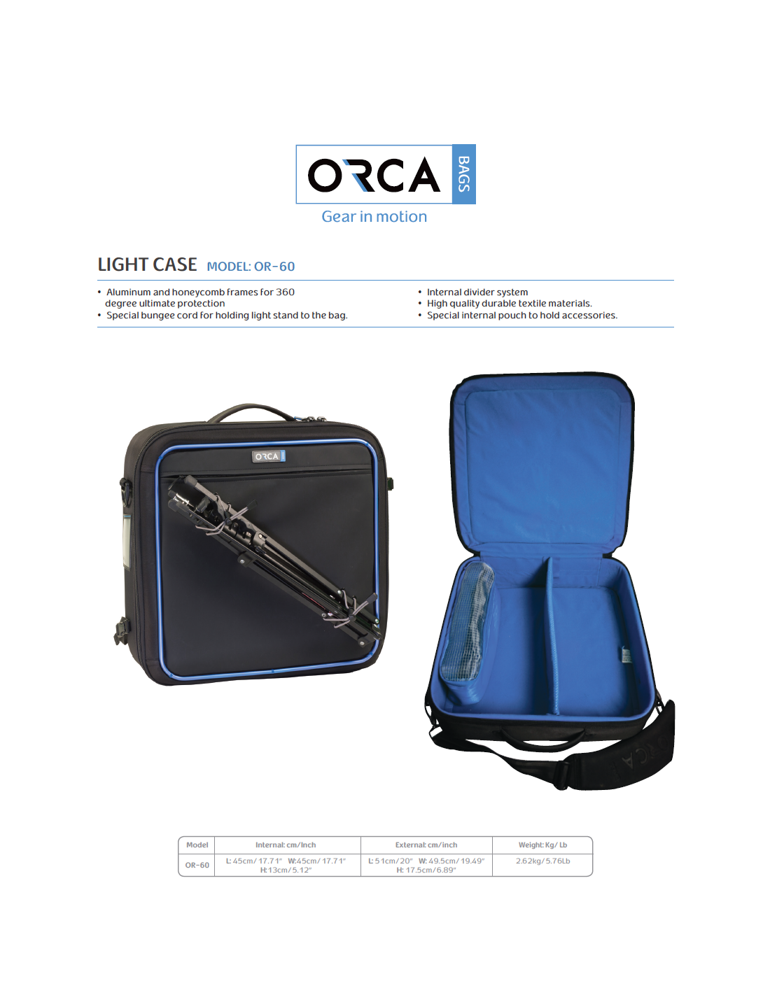 Le ORCA OR-60 Accessories / LED Panel Case a été conçu comme une solution tout-en-un pour le transport sécurisé des panneaux LED 1×1 (type 1000 LED) ainsi que de leurs accessoires essentiels tels que alimentation, câbles, connecteurs et pieds lumière.