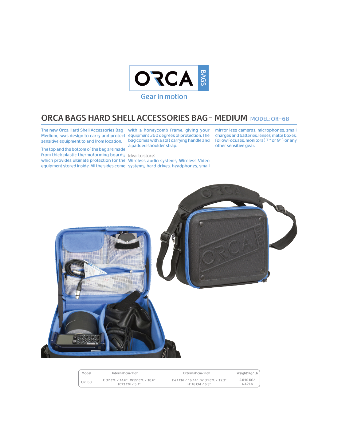 Polyvalente, la OR-68 est idéale pour stocker et transporter des systèmes audio HF, systèmes vidéo sans fil, disques durs, casques, caméras mirrorless compactes, microphones, chargeurs, batteries, objectifs, matte boxes, follow focus, moniteurs ou tout autre matériel sensible.