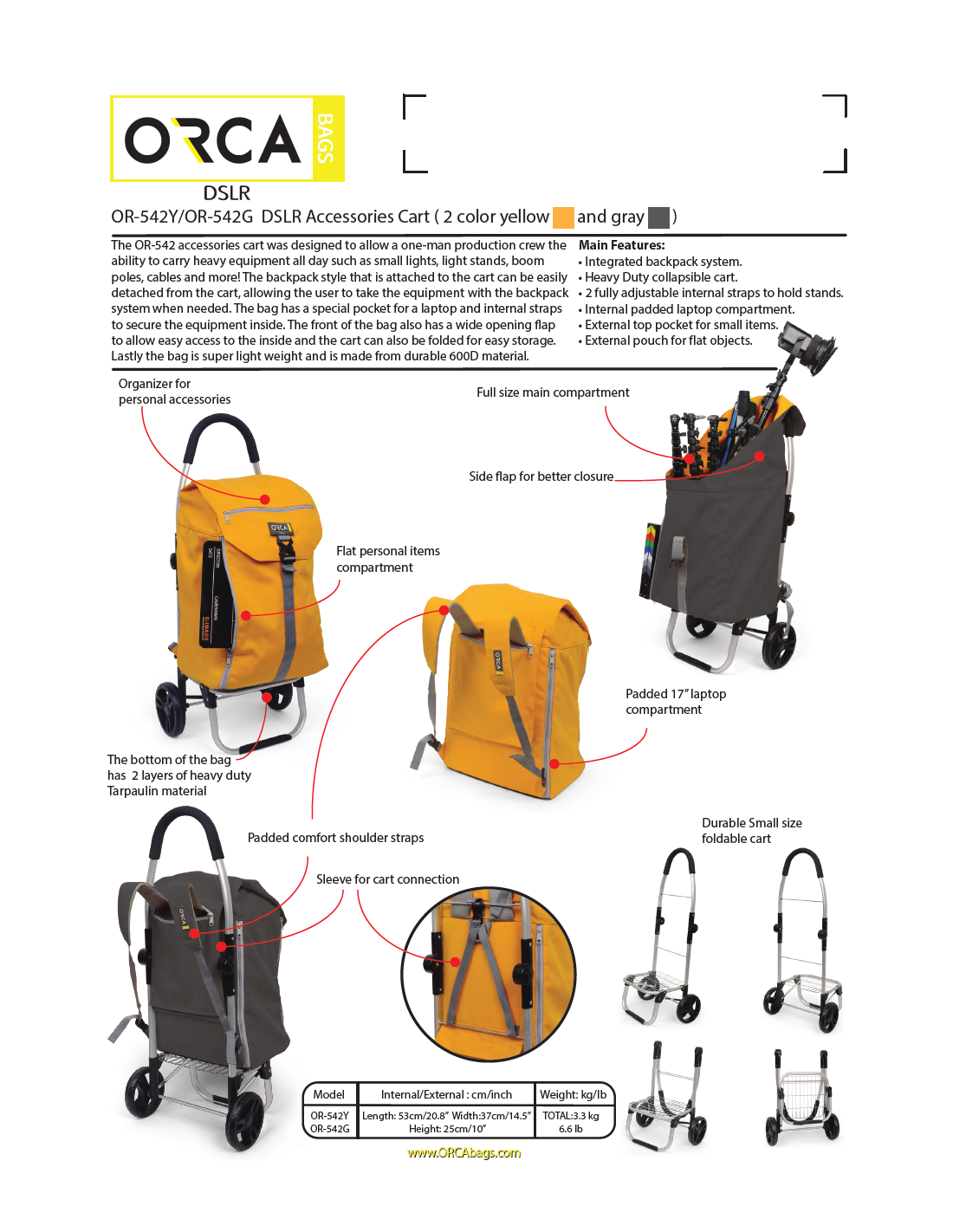 Conçu en polyester 600D résistant et très léger, le OR-542 combine mobilité, modularité et confort pour les tournages terrain.