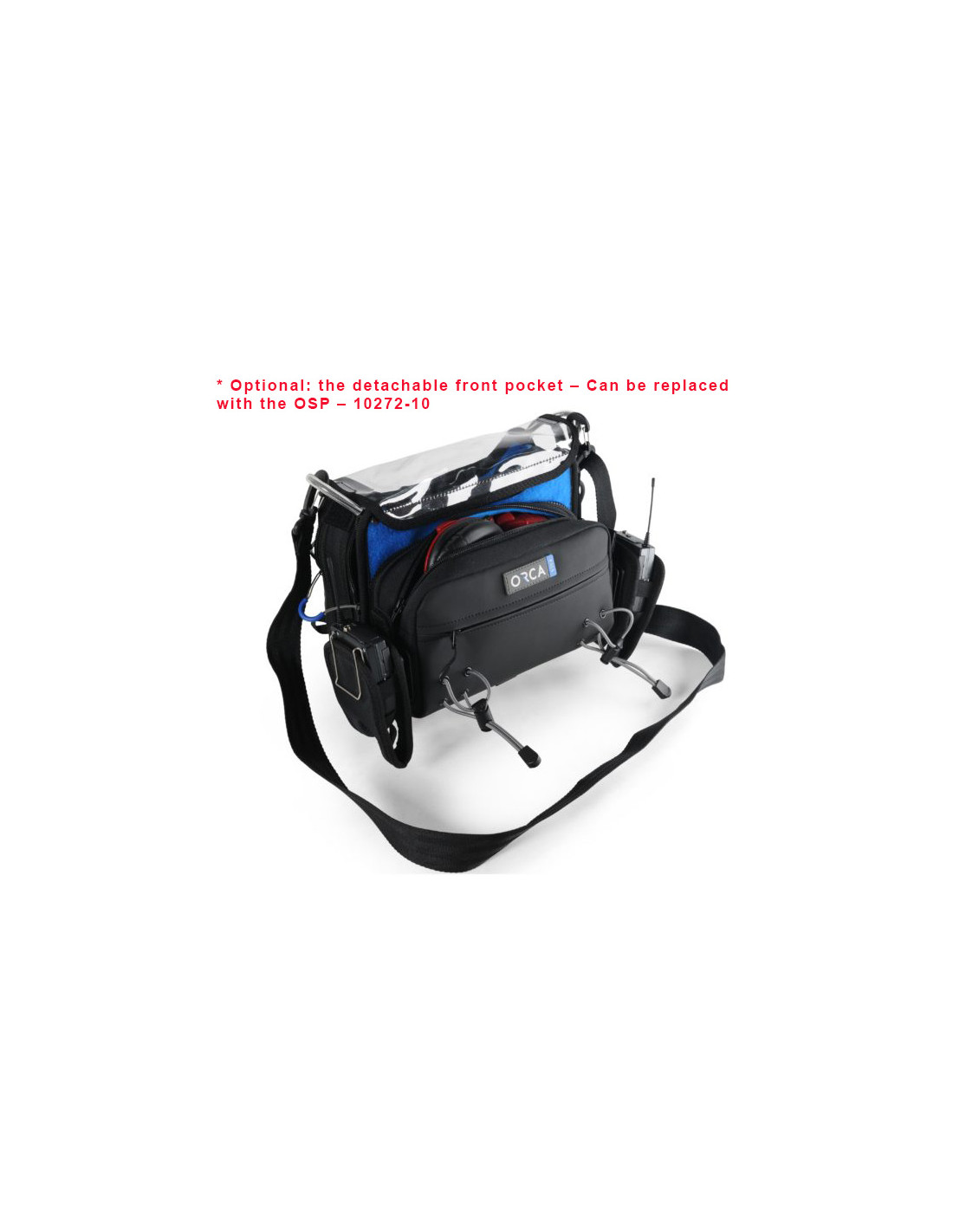 La sacoche dispose d’une poche arrière et d’une poche avant amovible pour le rangement de petites batteries ou de récepteurs HF doubles, tandis que des sangles Velcro maintiennent solidement l’enregistreur en place.