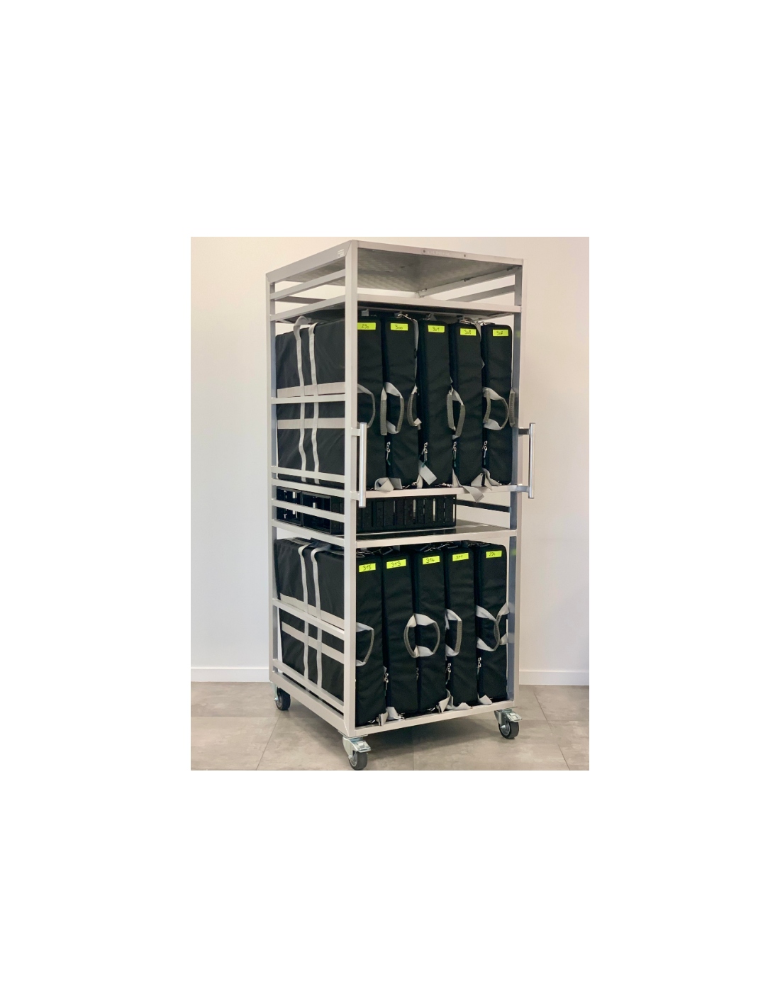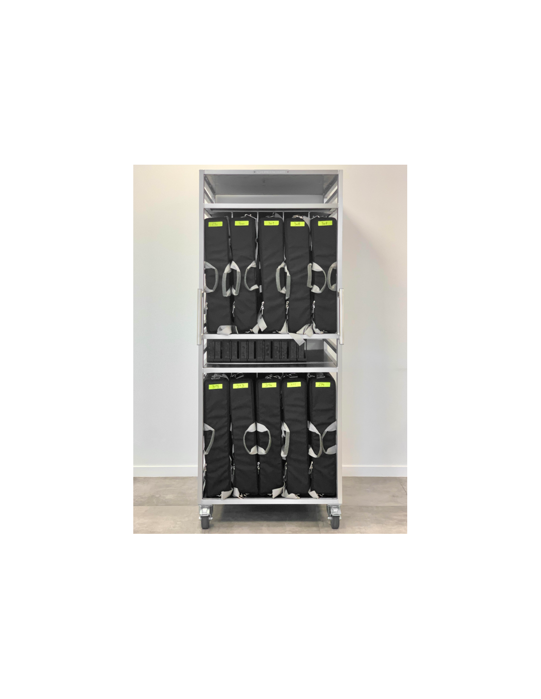 Utilisation : dotée de 10 compartiments à miroir, elle permet d’organiser efficacement les glaces nécessaires à la constitution des trousses maquillage, tout en facilitant leur transport sur le plateau. La réhausse intégrée optimise l’espace de travail en offrant un accès confortable au contenu, même en position debout.