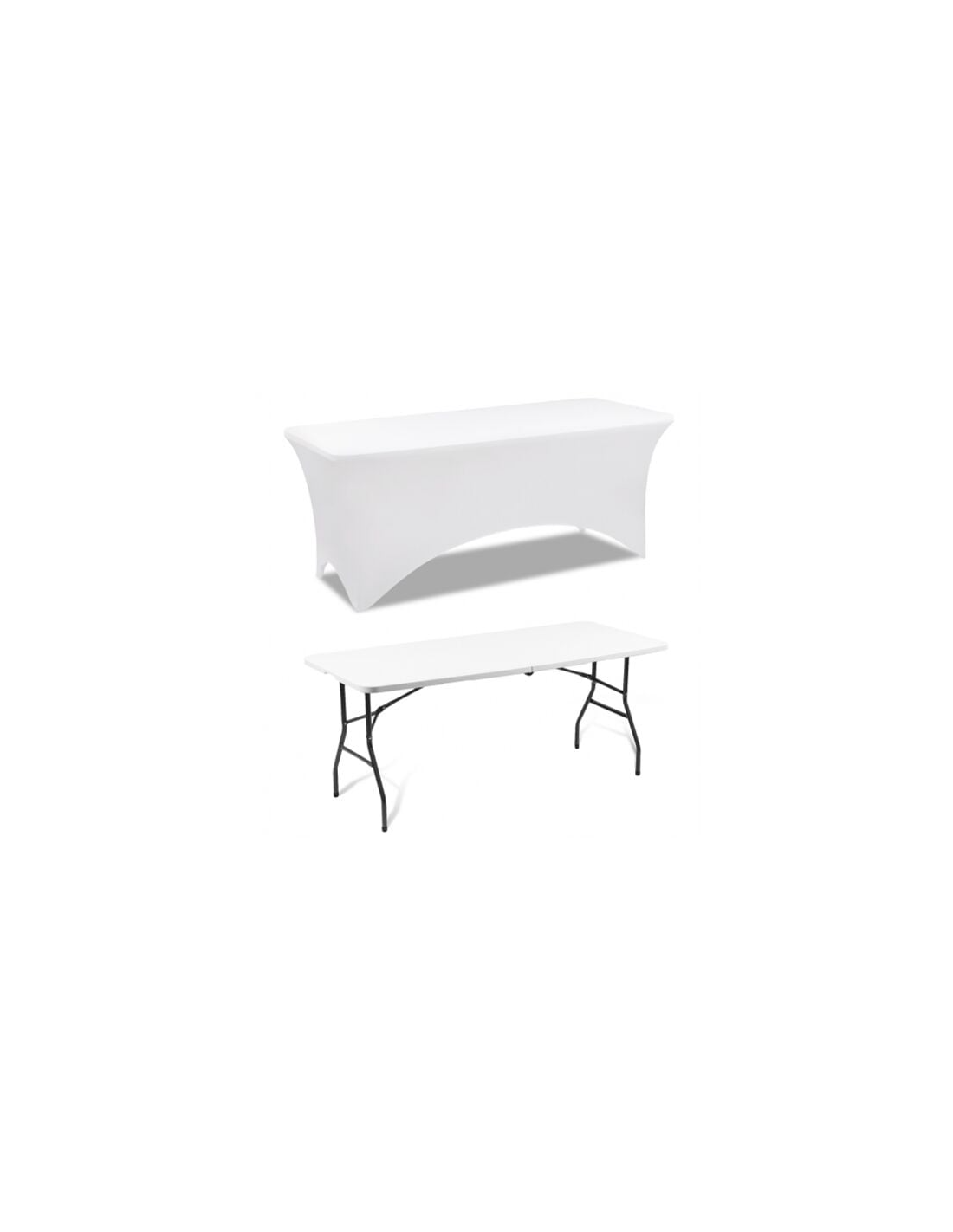 Fabriquée en polyester et élasthanne 165 g/m², elle s’étire facilement pour épouser la forme de la table, assurant une finition nette et professionnelle.