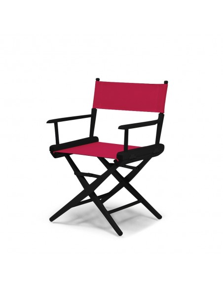 Rapidement ce fauteuil cinéma a séduit les particuliers qui désiraient une ambiance Cinéma dans leurs intérieurs. Il peut tout aussi bien être utilisé en extérieur comme mobilier de jardin. Ce modèle de la gamme " Célébrity", présente des lignes plus fines, particulièrement appréciées lors de shooting photo, d'événements autour de la mode ou du maquillage.  Dimensions du Fauteuil Réalisateur:  . Hauteur: 85cm. . Largeur : 60 cm. . Hauteur assise: 45cm. . Longueur assise: 55cm. . Largeur assise: 40cm.    Couleurs des toiles : ( tissu 100% coton, toile noire par défaut) Nous vous proposons 12 coloris différents pour vos toiles de fauteuil réalisateur. ( Noir, Gris, Écru, Jaune, Rouge, Orange, Marron, Vert Kaki, Curry, Bleu ciel, Bleu roi, Bleu indigo).   Pour vos tournages ou vos événements, n'oubliez pas de consulter aussi le fauteuil maquillage noir, très prisés, notamment par les marques de luxe qui marquent leur logo sur la toile pour une meilleure visibilité lors d'opérations marketing.