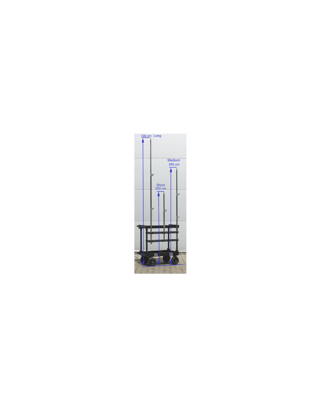 La hauteur réglable de 83 à 196 cm permet d’adapter précisément le point de vue ou l’orientation d’un écran ou projecteur, et atteint jusqu’à 260 cm de hauteur une fois installé sur le chariot.