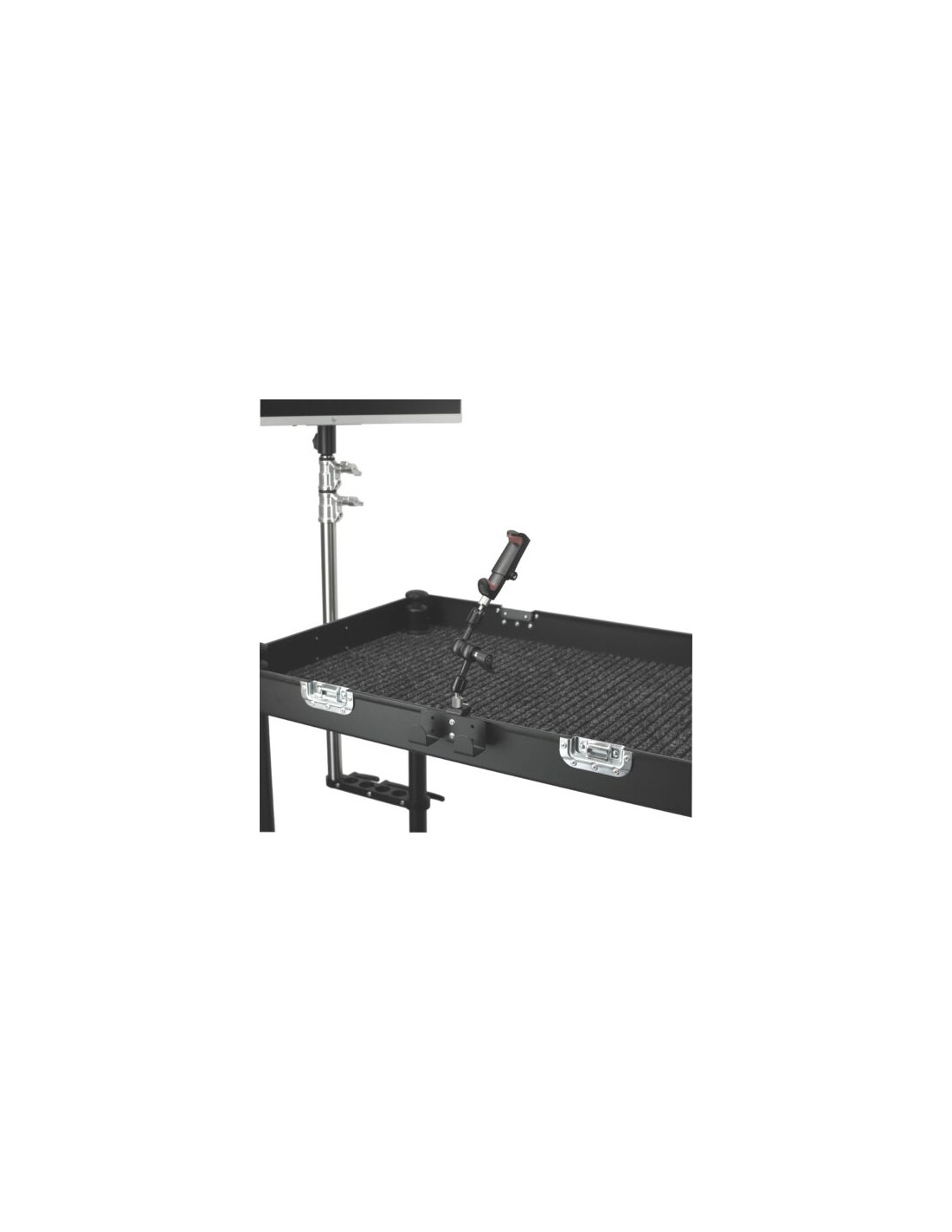 Le système Quick Clamp avec trou fileté permet un montage rapide et sans outil sur toutes les roulantes Smartone. L’adaptateur Manfrotto 3/8″ vers 1/4″ inclus vous permet également de fixer un accessoire complémentaire (bras articulé, support de moniteur, etc.) directement sur la pince.
