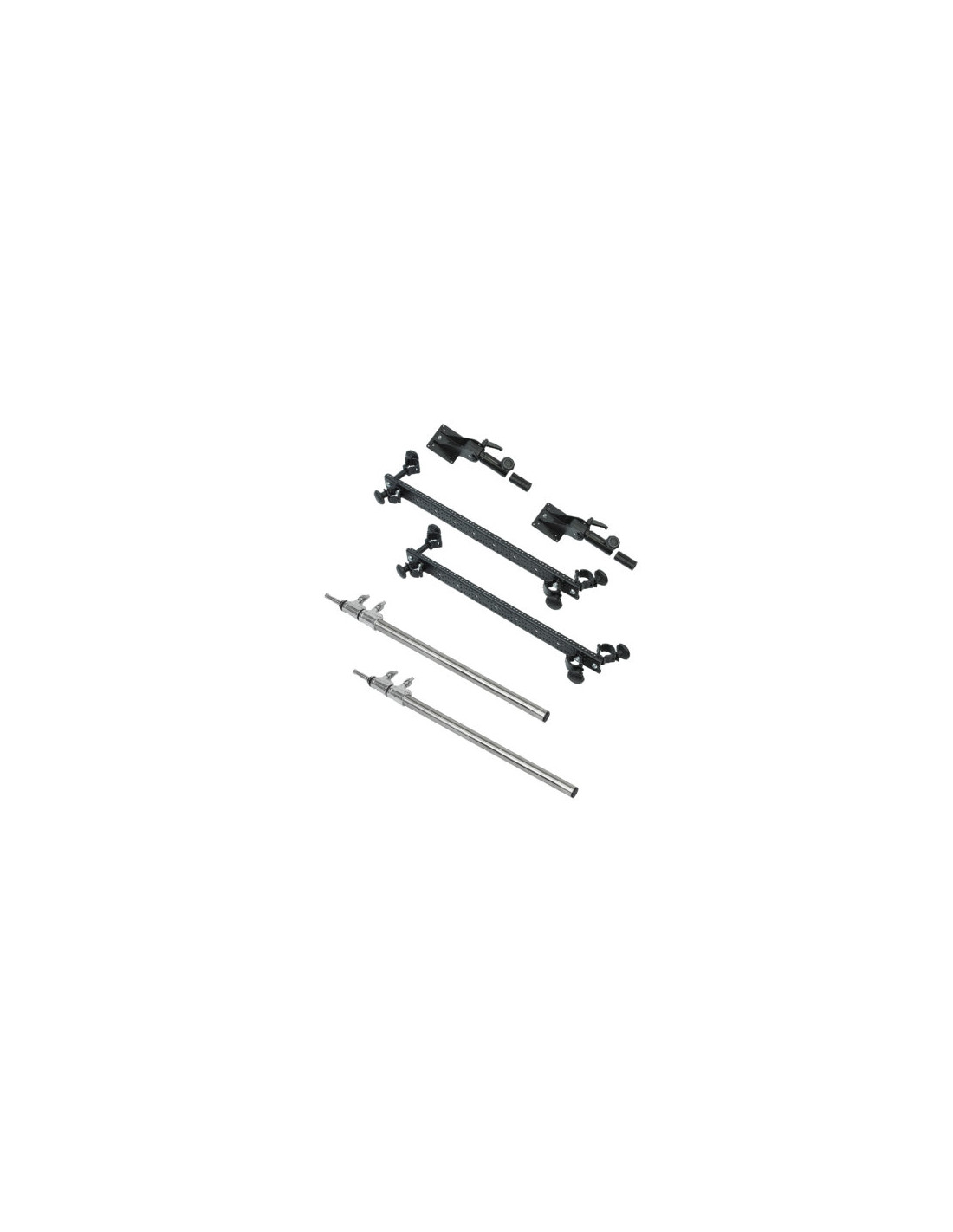 Le support double moniteur VESA est une solution hautement professionnelle pour l'installation de deux écrans sur une roulante Smartone Micro ou Mini. La structure repose sur une barre transversale en acier longue, perforée, permettant une fixation solide et l’ajout éventuel d’accessoires supplémentaires.