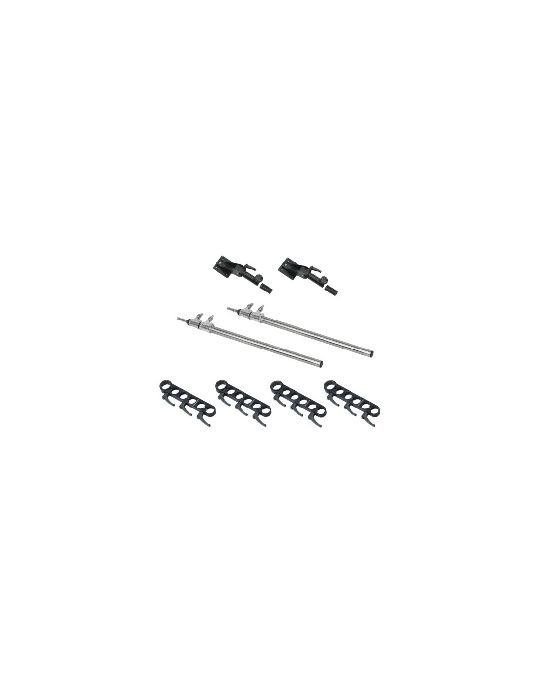 Les fixations VESA fournies s’adaptent aux écrans compatibles MIS-D 75/100 mm, garantissant une parfaite compatibilité avec la majorité des moniteurs de tournage. L’ensemble est renforcé par des adaptateurs en manchon permettant une jonction sûre entre les éléments en 35 mm et les pins 5/8″.