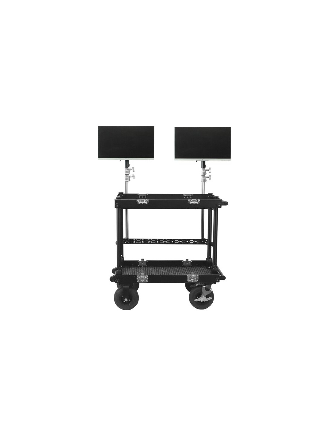 Un support double moniteur VESA sécurisé, réglable et évolutif, parfait pour les tournages sur roulante caméra.