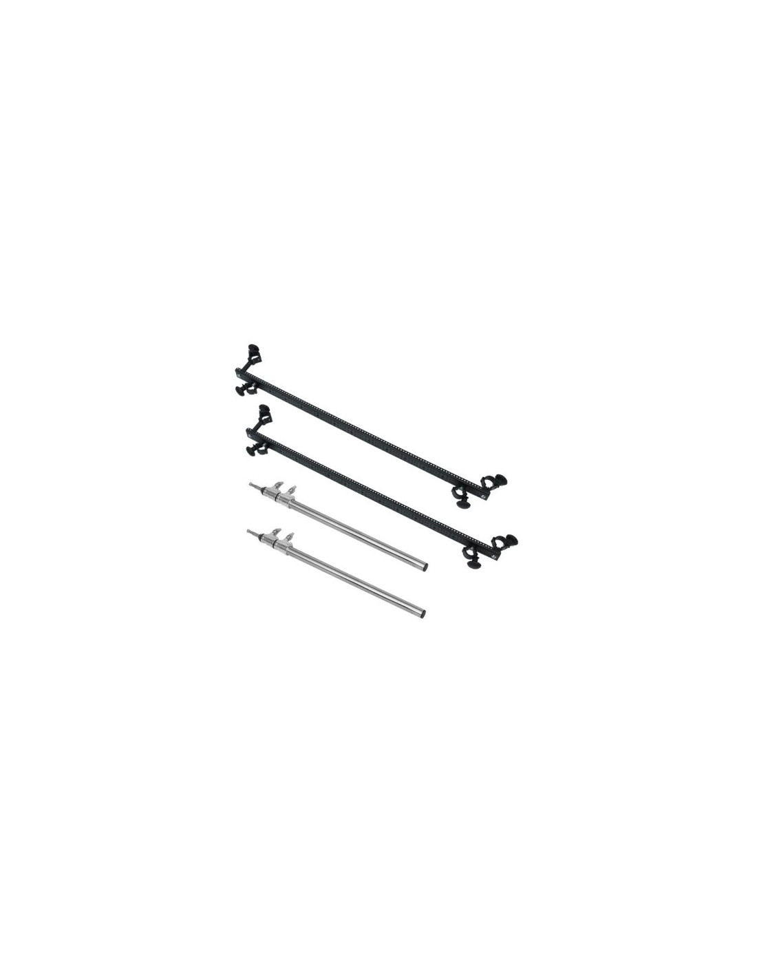 La barre transversale en acier offre une fixation centrale robuste et un large éventail de perçages pour y ajouter des accessoires complémentaires (supports, bras articulés, pinces lumière…). Les quatre colliers de serrage fournis garantissent une fixation sécurisée sur la roulante, même en mouvement.