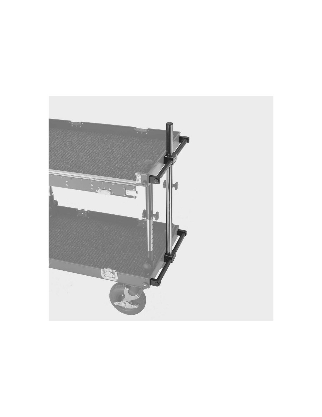 Cette amélioration remplace les poignées standard de la roulante par des poignées avec supports intégrés pour tube 35 mm, positionnés sur les deux étagères (inférieure et supérieure). Un tube 35 mm est inclus, permettant d’ajouter rapidement des accessoires professionnels comme des bols caméra ou supports VESA directement sur le chariot.