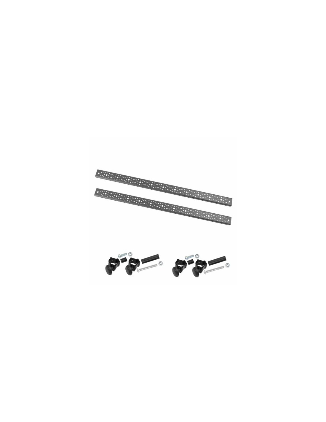 Le kit complet inclut toutes les pièces nécessaires pour une installation simple et sans outil. Fabriquées en acier et aluminium, les barres offrent robustesse et fiabilité sur les tournages intensifs. Ce set double permet une configuration équilibrée sur les deux côtés.