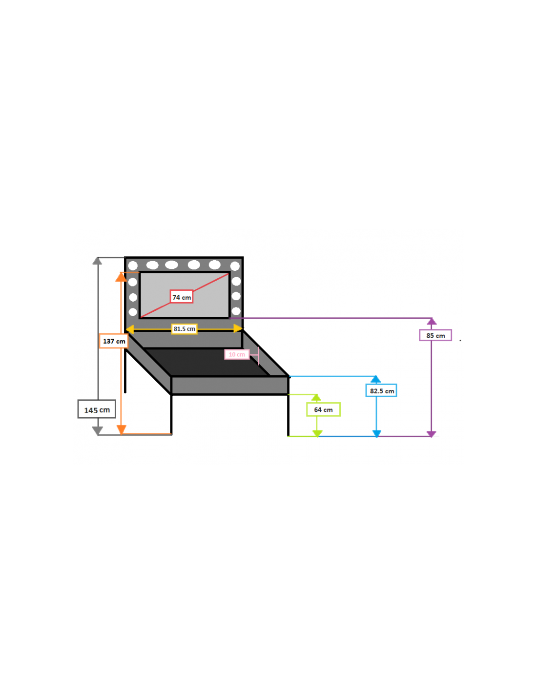 Utilisation : intégrant un miroir équipé d’ampoules à lumière artificielle, elle recrée des conditions d’éclairage stables et contrôlées, idéales pour les environnements de tournage en intérieur. Son design élégant et fonctionnel en fait un élément central dans les loges, studios ou espaces de préparation.