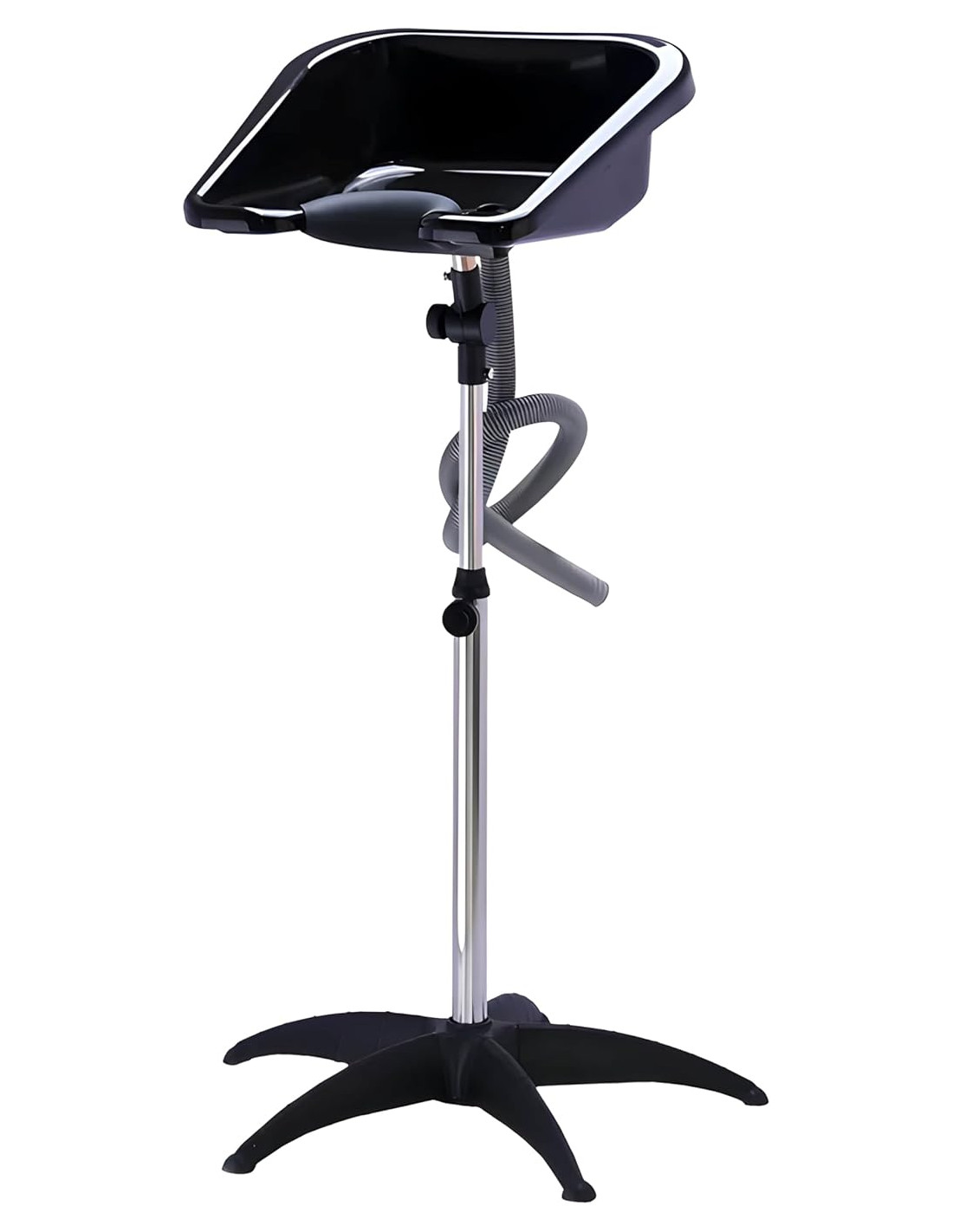Ce bac lave-tête noir portable est un accessoire indispensable pour les coiffeurs, idéal pour les lavages de cheveux en loge ou sur le plateau. Léger, mobile et facile à monter et démonter, il offre une flexibilité maximale grâce à son pied réglable en hauteur et sa cuve orientable. Son design assure un confort optimal pour le modèle et une ergonomie de travail efficace pour le professionnel.