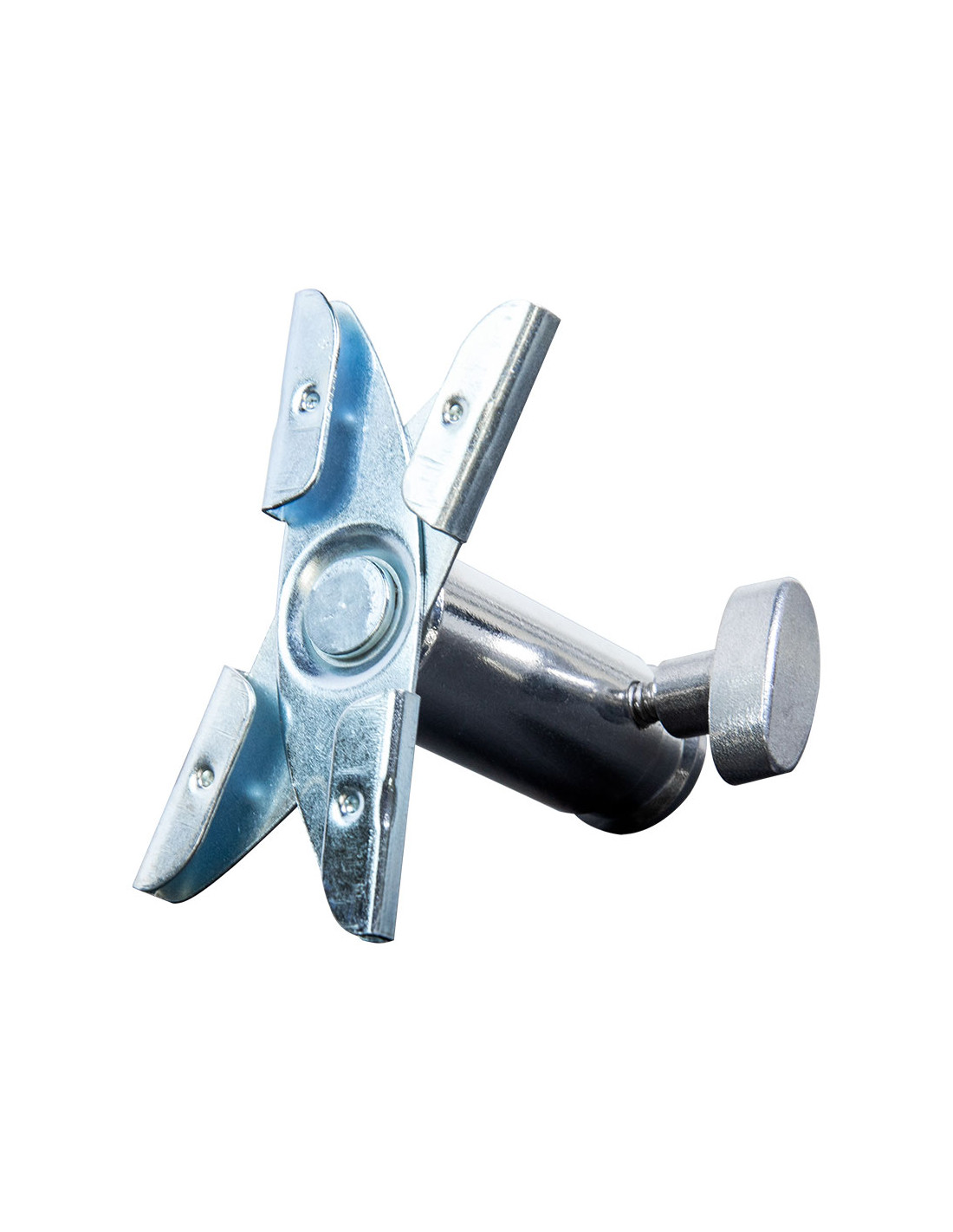 La base Kupole est conçue pour convertir un Kupole en un support conventionnel lorsque le plafond est plus haut que 3,6 m ou qu'un arrière-plan autoportant est nécessaire. La base centrale accepte des tubes de 45 mm de diamètre. Le diamètre des pieds est de 22 mm et l'encombrement est de 126 cm. Il suffit de retirer le couvercle inférieur en caoutchouc, de glisser la base du trépied et de remettre le couvercle en place.