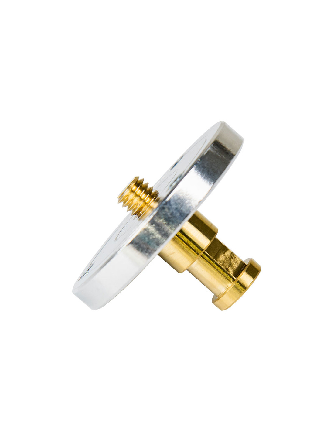 La tourelle KUPO 3/8"-16 Ball Head Mounting Plate est un support rond en aluminium anodisé de 60 mm de diamètre, équipé d’un spigot baby 16 mm et d’une plaque de montage filetée 3/8"-16.