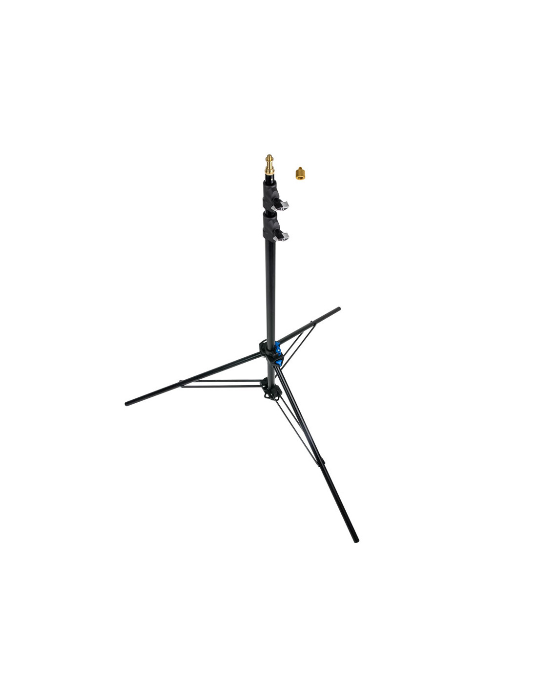 Trépied aluminium noir KUPO 080AC avec système à air comprimé, 3 sections, hauteur réglable de 104,5 à 243,84 cm, charge max 5 kg, compact et portable.
