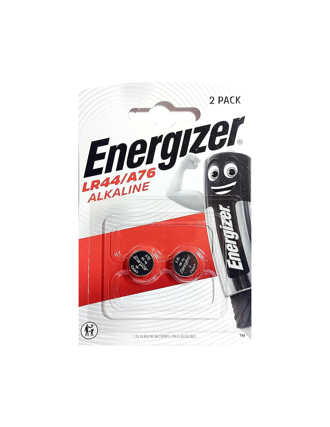 Piles alcalines bouton LR44 1,5V, vendues par paire, idéales pour petits appareils.