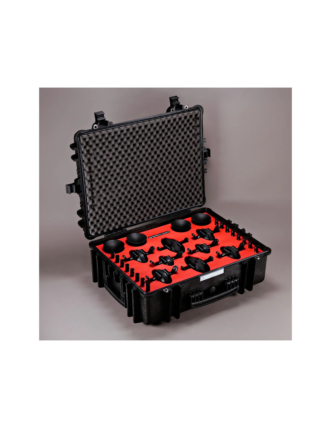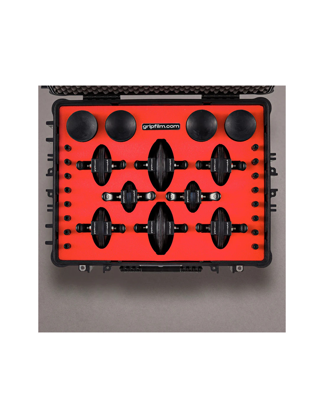 Ce set comprend 20 ventouses réparties sur quatre diamètres (85 mm, 90 mm, 120 mm et 150 mm), accompagnées de 16 broches de démarrage de 80 mm avec filetages femelles 1/4" – 3/8". Chaque ventouse est fabriquée en aluminium anodisé noir haute résistance avec des éléments en acier inoxydable, garantissant durabilité et performance. Le tout est soigneusement organisé dans une valise Explorer 5822 résistante aux chocs et à l’eau, avec mousse découpée au laser. Idéal pour une utilisation professionnelle en tournage, où efficacité et sécurité sont primordiales.
