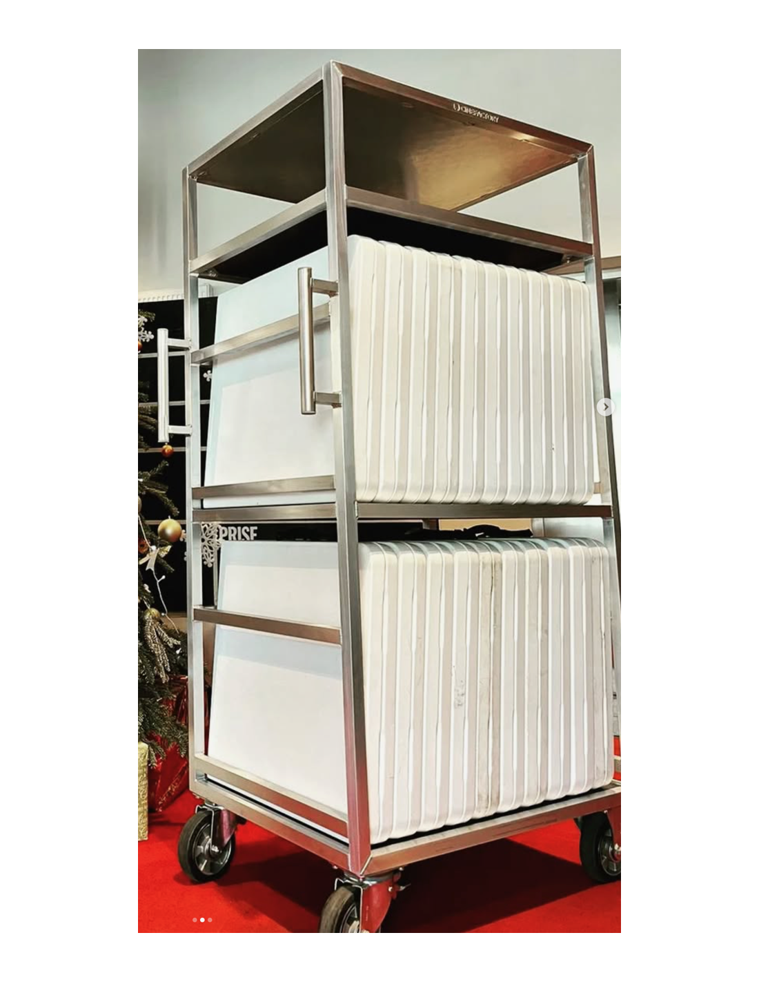 Roulante petite table régie Cinefactory, conçue pour transporter jusqu'à 20 tables de 120 cm.