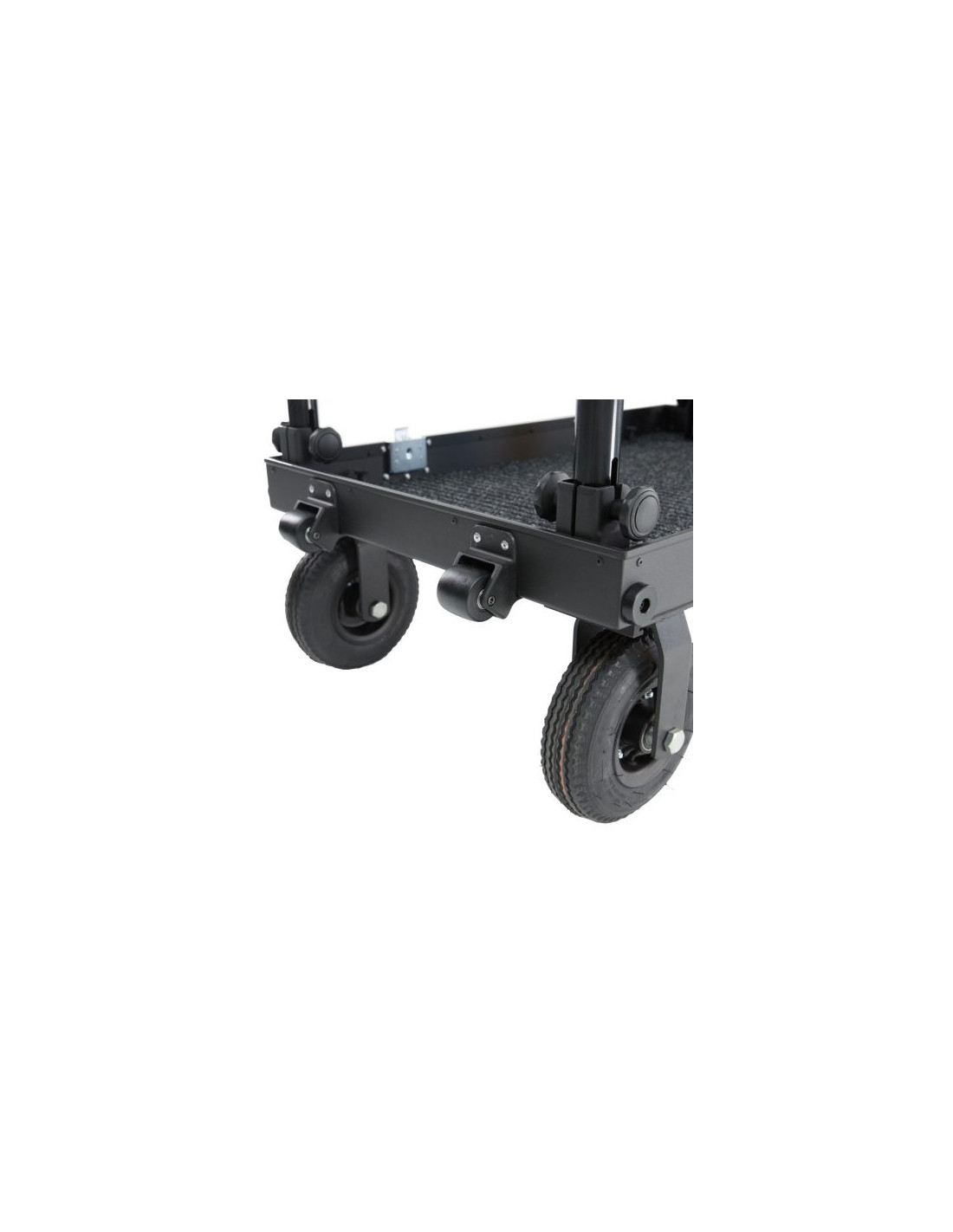 Les roues pneumatiques 4 couches montées sur jantes acier assurent une excellente stabilité sur tous types de terrains. Le système de freins à pied avec régulation de force garantit une immobilisation fiable. Aucune vis ou outil n’est requis : toutes les pièces (y compris les roues) peuvent être installées ou retirées en moins de 2 minutes.