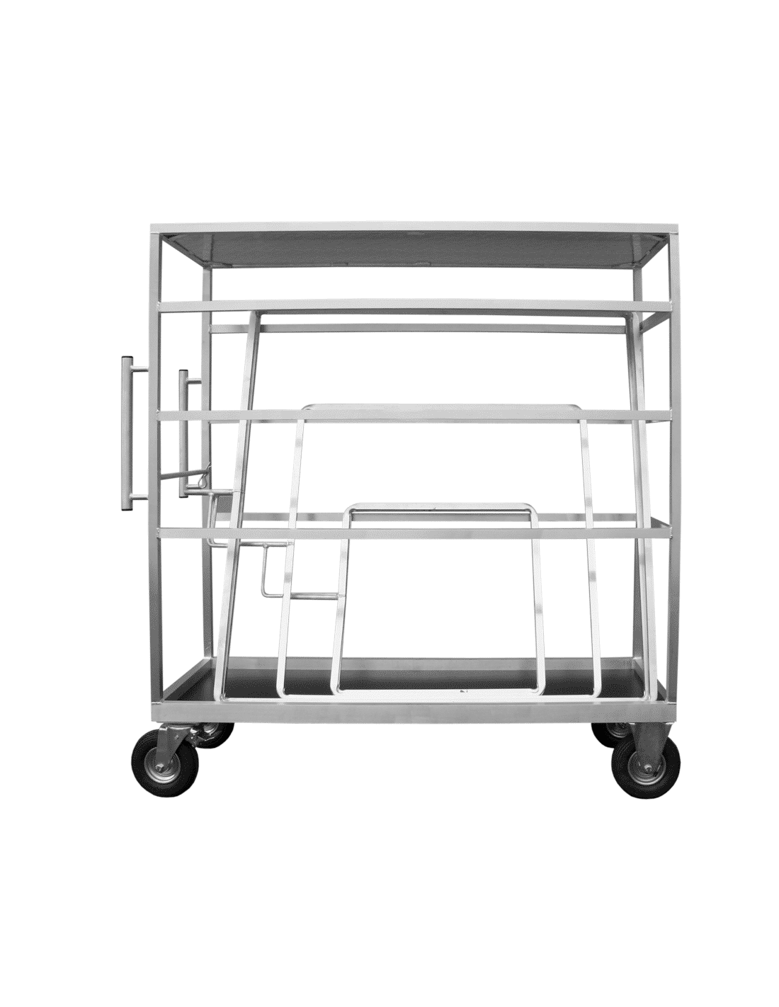 Chariot Cinefactory pratique et robuste, idéal pour déplacer et organiser des cadres de 150×150 cm en production audiovisuelle.