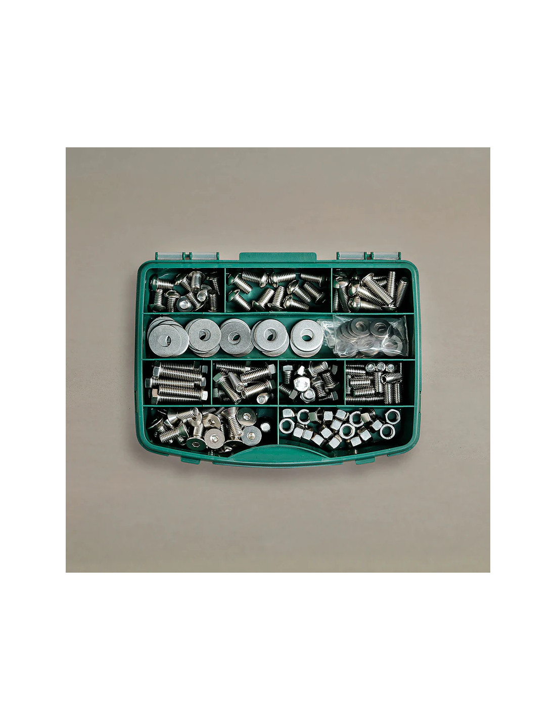 Complet et résistant, ce set comprend différentes vis 3/8" (DIN 7380, 913, 7991, 933) et écrous (DIN 934), compatibles avec une clé Allen 7/32. Conçu en acier inoxydable A-2, il garantit une excellente tenue à la corrosion, idéal pour les environnements exigeants du cinéma et de l’audiovisuel.