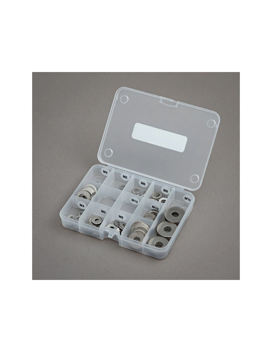 Composé de rondelles plates DIN 125 A-2 et de rondelles larges DIN 9021 A-2, ce kit couvre tous les diamètres standards nécessaires aux montages techniques. Fabriquées en acier inoxydable A2, elles offrent une excellente résistance à la corrosion, à l’usure et au temps. Parfaitement organisées dans une boîte compartimentée, elles assurent un accès rapide et une gestion optimisée sur les tournages ou en atelier.