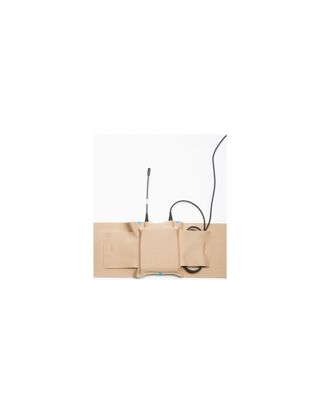 Sa poche universelle accueille la majorité des émetteurs HF, maintenus fermement grâce à une bande auto-agrippante invisible, tandis que deux passages dédiés permettent une gestion propre et discrète des câbles.